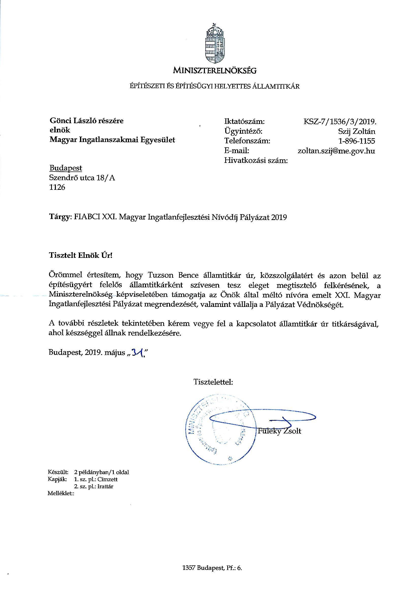 Közlemény: XXI. FIABCI-MINP nevezési díj